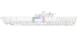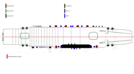 Авианосцы типа Audacious имели уникальное расположение ангаров и подъемников - из-за дымоходов корабля их пришлось сдвинуть немного к левому борту.