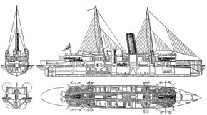 Стальные корпуса крейсеров делился на отсеки водонепроницаемыми переборками. Для уменьшения уязвимости от настильного огня корпус сделан низкобортным – высота борта в носу составляла всего 1,5 м. В центре корабля располагалась массивная надстройка с двумя лёгкими мачтами и единственной наклонной дымовой трубой. Мачты несли парусное вооружение. Носовая часть была усилена для возможности тарана.