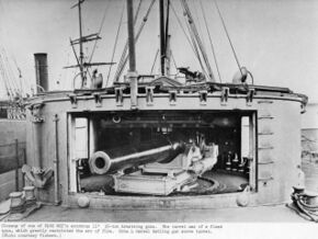 В надстройке находились казематы артиллерии среднего калибра, жилые и служебные помещения. С обоих сторон к надстройке были пристроены круглые барбеты для орудий главного калибра. В каждом барбетном каземате было по три орудийных порта, в походном положении закрывающиеся специальными стальными задвижками.