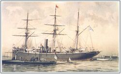 - ↑ Должен был нагнать и присоединится к отряду, но из-за поломок стал на ремонт в док в Алжире.