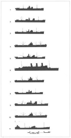 - ↑ 'Sembilan шел из Глазго через Дурбан в Порт-Саид и Александрию с 4823 тоннами различных грузов, включая боеприпасы. На его борту были также два британских десантных корабля типа LCP.