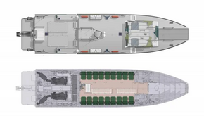Катер в десантном варианте позволяет транспортировать 19 человек. Доступ в десантное отделение обеспечивается люком в его кормовой части. Также предусмотрен проход, позволяющий попасть в рубку, а оттуда – в носовой тоннель. При высадке на неподготовленное побережье десантники должны использовать тоннель, оснащенный опускаемой носовой аппарелью и двустворчатой верхней крышкой. Такой способ десантирования упрощает высадку, а также позволяет бойцам максимально быстро приступить к выполнению поставленных задач.