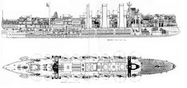 - ↑ По 8 котлов в носовом и кормовом, 6 в среднем.