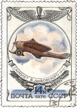 В 1976 году в СССР вышла почтовая марка стоимостью 14 копеек - «самолет Дыбовского». На марке был изображен моноплан «Дельфин».