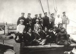 Участники русской полярной экспедиции на носу шхуны «Заря»