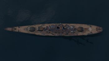 Вспомогательная 152-мм артиллерия размещена в шести закрытых трёхорудийных башнях, две в носовой и кормовой части, ещё по две расположены побортно.