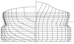 При проектировании[1] корпуса корабля его форма выбиралась с учетом необходимости обеспечения надежной подводной защиты: корабль имел плоское днище и развитые були «ящичного» типа.