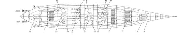 Ряд поперечных и продольных переборок, а также часть платформ выполнялись из 20-мм брони.