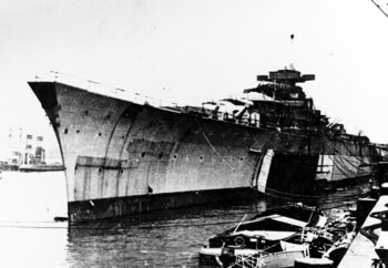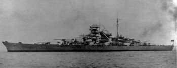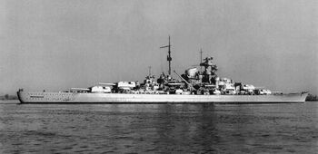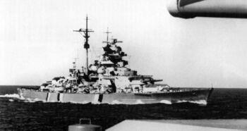 - ↑ На заднем плане слева - тяжелый крейсер Admiral Hipper.