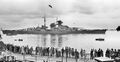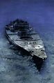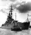 - ↑ Судя по осадке, линкор еще не загружен припасами, топливом, боезапасом.