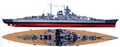- ↑ Первоначально оба линкора имели почти вертикальные форштевни (наибольшая длина 229,8 м) с малым развалом носовых шпангоутов, но во время испытаний была выявлена сильная заливаемость носовой части, после чего корабли получили клиперный (так называемый «атлантический») форштевень.