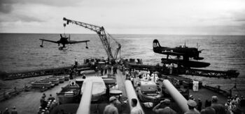 Самолет A6M Zero врезался в борт USS Missouri под главной палубой, причинив незначительные повреждения и не причинив жертв на борту линкора. Окинава, 11 апреля 1945 г.