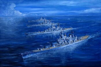 Значительное место в ней занимали линкоры - им отводился суммарный тоннаж в 385 тыс. т. Поэтому 9 сентября последовал заказ еще на два корабля типа Iowa - BB-65 USS Illinois и BB-66 USS Kentucky. Кроме того, к постройке утвердили пять гигантов типа Montana (ВВ-67 - ВВ-71), разработанных на основе отвергнутого два года назад проекта «тихоходного линкора» с вооружением из двенадцати 406-мм орудий.