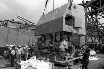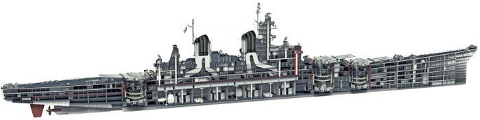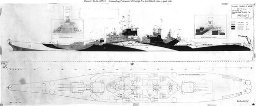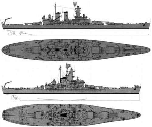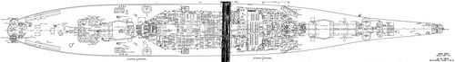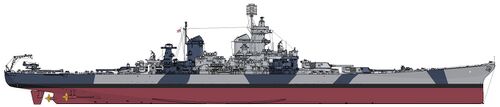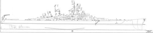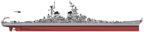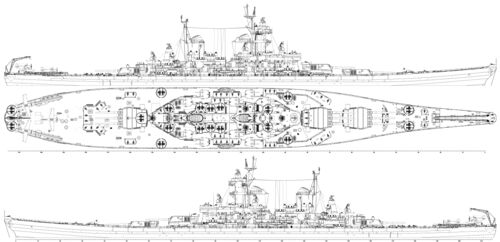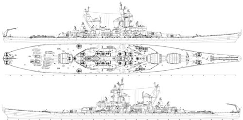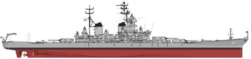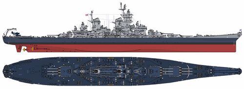 Примечание: У USS New Jersey наибольшая длина корпуса составляла 270,53 м, по ватерлинии - 262,08 м, у USS Missouri и USS Wisconsin - соответственно 270,43 м и 262,12 м. Средняя осадка USS New Jersey при наибольшем водоизмещении - 11,58 м. |