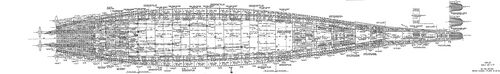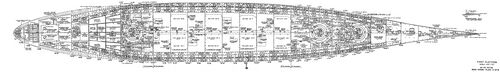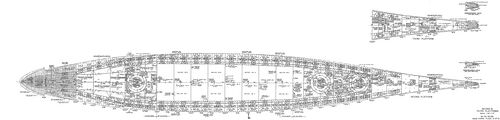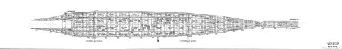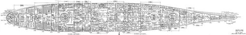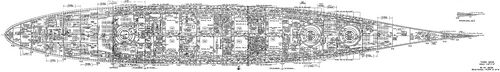 По длине главный пояс прикрывает борт от 50-го до 166-го шп. Нижний был длиннее: он доходил до 189-го шп. Правда, его высота в корме резко уменьшалась и составляла от 5,19 м (166-й шп.) до 4,69 м (189-й шп.).