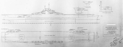 В апреле - июле три предэскизных проекта тихоходного линкора были представлены на рассмотрение. Стандартное водоизмещение корабля находилось в пределах 45 100 - 45 500 т, скорость хода - 27-27,5 узла. Вооружение включало девять 457-мм/48 орудий или двенадцать 406-мм/50 клб орудий, а также 20 127-мм зениток. Бронирование было очень мощным: толщина наклонного броневого пояса составляла 375 мм на 19-мм подкладке, броневых палуб - 38, 149 и 16 мм. То есть, в целом характеристики, особенно варианта с 457-мм орудиями, почти вплотную приближались к реальным параметрам линкоров типа Yamato.