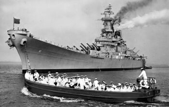 Линкор USS Missouri в море, июнь 1950 г.