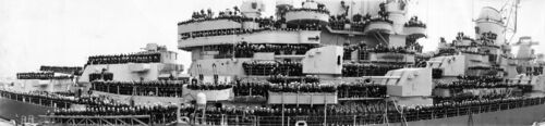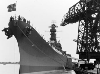Линкор USS Wisconsin через некоторое время после спуска на воду. Филадельфия, конец 1943 г.