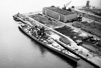 Корпус линкора USS Kentucky на Военно-морской верфи Норфолка, 1950 г.