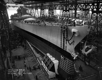 Подкотовка к спуску на воду USS Wisconsin. Филадельфия, начало декабря 1943 г.