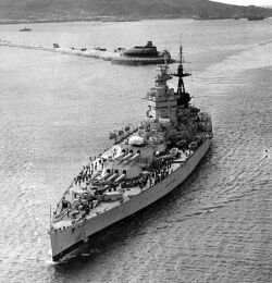Линкор HMS Nelson прибыл на разборку. Инверкитинг, 15 марта 1949 г.