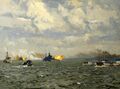 Линкор HMS Rodney ведет огонь по Bismark, 27 мая 1941 г. Рисунок