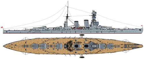 - артиллерия главного калибра - девять 406-мм/45 орудий Mark I, противоминный и зенитный калибр еще не определены, однако считалось достаточным иметь двенадцать 152-мм и четыре 120-мм орудий;