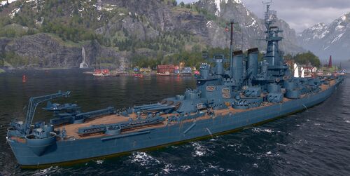 | Вооружение | 12 (3×4) — 356-мм/50 Mark B, 16 (6×2+4×1) — 127-мм/38 Mark 12, 16 (4×4) — 28-мм/75 Mark 1 8 (8×1) — 12,7-мм/72 Browning |