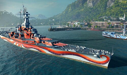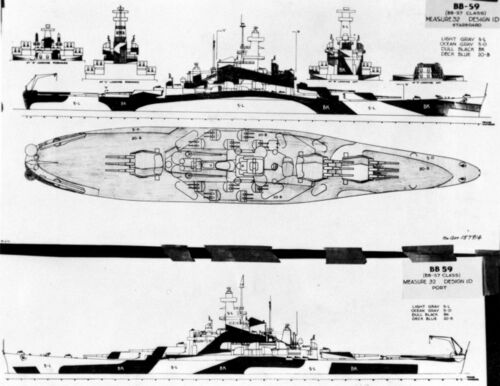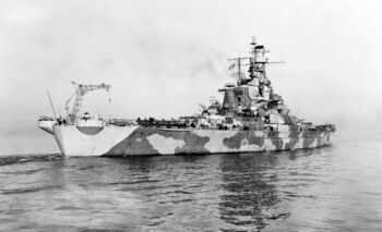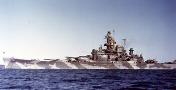 Линкор USS Alabama в заливе Каско, конец декабря 1942 г. Схема камуфляжа Measure 12 (modified).