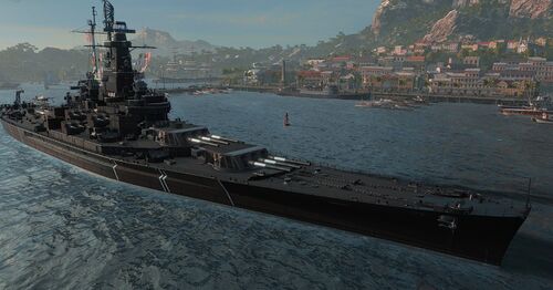 - проект «С», который, учитывая его ограниченную длину в средней части, мог вместить только шестнадцать 127-мм универсальных орудий. Также было трудно найти место для постов управления и шлюпок, а жилые помещения были тесными. Внутренний край зоны неуязвимости переместился с 11 400 на 12 200 метров. Если бы вместо этого часть защиты была перенесена на трехорудийные башни, внутренний край был бы увеличен с 15 100 до 16 000 метров. Однако, заменить трехорудийные 356-мм башни на трехорудийные 406-мм было бы «менее просто», чем в случае четырехорудийных 356-мм установок.