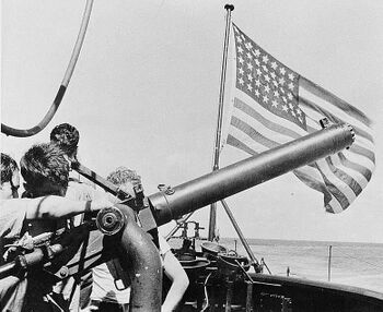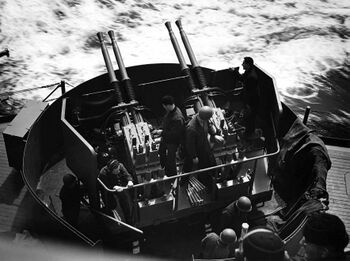 Зенитные автоматы USS Massachusetts отражают налет четырех французских самолетов. Касабланка, 8 ноября 1942 г.