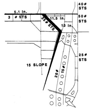 Предложенное решение было оригинальным - наклонный внутрь пояс не был продолжен до бронированной палубы. Вместо этого он соединялся с верхним поясом, который был наклонен назад к палубе, так что верхняя часть бронированной цитадели напоминала старые плоские палубы со скосами. Это дало несколько результатов. Во-первых, уменьшило расстояние между поясом и внешним корпусом. Во-вторых, уменьшило площадь и, следовательно, вес плоской бронированной палубы. На дальних дистанциях верхний пояс был в невыгодном положении, так как из-за его наклона снаряды попадали ближе к перпендикуляру, то есть с большим эффектом. С другой стороны, на относительно небольшой дистанции большинство снарядов, летящих по почти ровной траектории, попадали бы в верхнюю часть броневого пояса, поскольку они не попадали бы в нижнюю часть пояса. Его наклон был бы эффективным. Разделение между верхним и нижним поясами позволило использовать более толстый верхний пояс, эффективно сдвинув внутренний край зоны неуязвимости. Дополнительная толщина может компенсировать потерю эффективного наклона на большом расстоянии.