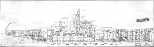 Наконец, любое уменьшение длины (по сравнению с проектом North Carolina) должно было быть компенсировано увеличением осадки, а поскольку водоизмещение не изменилось, и поскольку оба корабля имели ширину, максимально допустимую для прохождения через Панамский канал. Таким образом, новый проект имел необычно большую осадку в 12,18 метров.