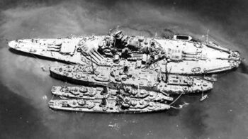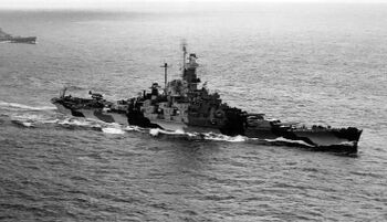 Линкор USS Indiana в Перл-Харборе после столкновения с USS Washington, 13 февраля 1944 г.