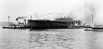 Линкор USS Alabama покидает «Norfolk navy yard», Портсмут, август 1943 г.