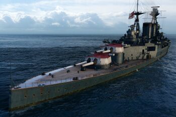 К концу 1914 года стало ясно, что конца войны не видно и близко. После отставки морского министра У.Черчилля и Первого морского лорда Джона Фишера в мае 1915 года[4] в Адмиралтействе задумались и о линейных кораблях. Хотя война не изобиловала линейными сражениями, но и в жесткой повседневной службе постепенно выяснялись недостатки, свойственные британским линкорам. Прежде всего, по английским меркам, они не были достаточно «сухими». Нахождение в постоянной готовности к сражению вынуждало поддерживать на кораблях полный запас топлива и боеприпасов. Имея не слишком высокий борт, дредноуты в перегруженном состоянии, волнении сильно заливались водой. Помимо неудобств для команды волны препятствовали использованию противоминной артиллерии, расположенной в казематах установках в выступах и вырезах бортов. Вода заливалась в амбразуры даже при не слишком сильном волнении. В такую погоду становилось проблематичным отразить атаку эсминцев противника. При крене, вызванных боевыми повреждениями, возникала серьезная опасность дополнительных затоплений через порты казематов.