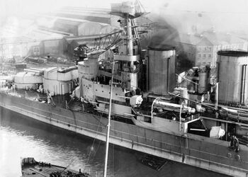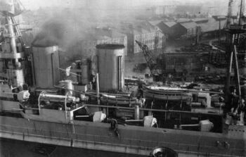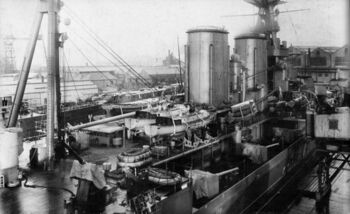 Линейный крейсер HMS Hood, Ньюкасл , Сев. Ирландия. 1920-е гг. Открыты броневые крышки торпедных аппаратов.