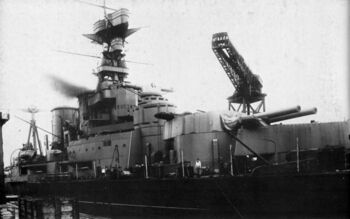 Линейный крейсер HMS Hood, 1931-32 гг. Катапульта с самолетом на юте.