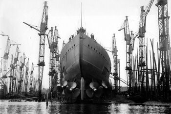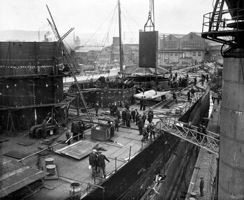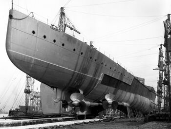 Корпус HMS Hood перед спуском на воду, лето 1918 г.