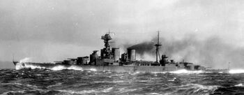Линейный крейсер HMS Hood на полном ходу, 1920-е гг.
