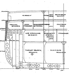 Корабль располагал двумя надстройками. Передняя надстройка имела 6 уровней: