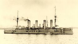 | Летом 1906 года Балтийская эскадра проводила учения вблизи Ревельских берегов. Ночью 20 июля около двенадцати часов старший офицер Мазуров заметил, что на носу собралась группа матросов. Увидев офицера, они начали разбегаться. Мазурову это показалось подозрительным. Он пошел на батарейную палубу, где спали матросы. На одной из коек лежали два матроса. Один из них назвался кочегаром. Мазуров, знавший всех кочегаров, увидел, что его вводят в заблуждение. Мазуров задержал матроса и запер его в ванном помещении. Это был матрос Оскар Минос. Узнав, что Минос арестован Мазуровым, матросы выбежали на верхнюю палубу. Офицеры потребовали, чтобы они разошлись, но матросы отказались выполнить приказ. Началась свалка, офицеры подняли стрельбу из револьверов. Матросы сбили их с ног, отняли оружие. Через несколько минут вся команда крейсера была на верхней палубе. Офицеры были обезоружены и задержаны. Крейсер оказался в руках восставших. Командование крейсером приняла на себя боевая дружина. |