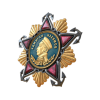 В марте 1944 года в разгар Великой Отечественной войны в СССР был учреждён орден Ушакова, ставший высшей наградой, специально предназначенной для офицеров Военно-Морского флота. Своё название орден получил в честь одного из самых выдающихся русских флотоводцев адмирала Фёдора Ушакова (1745–1817). Было установлено две степени награды. Орден 1 степени представлял собой изготовленную из платины пятиконечную звезду, на которую крепился серебряный якорь с цепью и покрытый эмалью золотой медальон с изображением флотоводца. Звезда орденского знака 2 степени была золотой, якорь и медальон — серебряными.