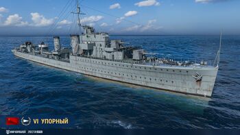 Всем новичкам с уровнем доступа с 4-го по 14-й будет начислен в аренду эсминец VI уровня «Упорный». На нём можно будет выйти только в Учебные испытания и Операции. Корабль советский, но на текущий момент в плане корпуса это аналог Icarus, а вооружение и снаряжение у него от эсминца Gaede (то есть у него будет всё вышеописанное снаряжение).