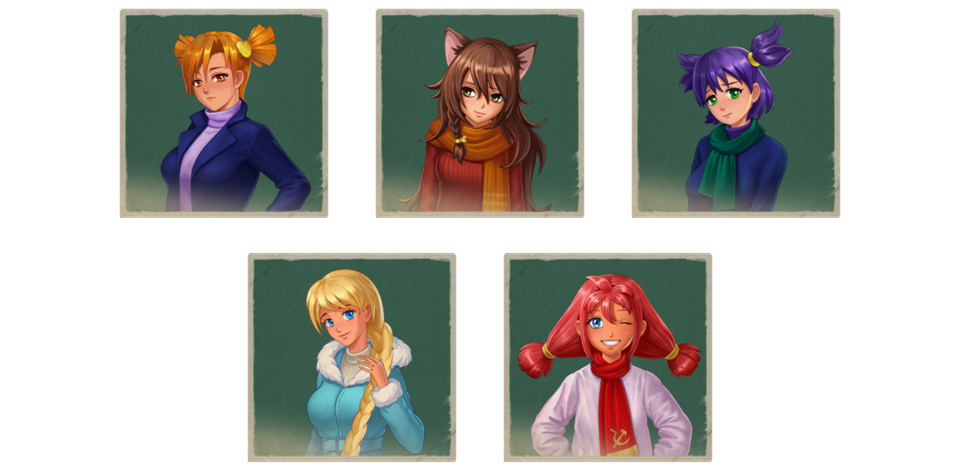 Вас ждут новые, зимние версии девушек-командиров: Слави, Алисы, Лены, Ульяны и Юли. Они порадуют вас специальной озвучкой и новой анимацией!