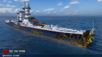 Появится редкий командир Владимир Гремицкий для кораблей СССР, а также постоянный камуфляж «Мемориальный» и памятный флаг для добавленного в версии 25.11 советского крейсера «Грем».