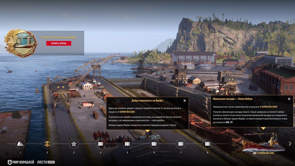 Через неделю после выхода обновления начнётся строительство Simón Bolívar — первого «корабля вампира» нашей игры! Активируя новое снаряжение «Боевой ремонт», он может восстанавливать боеспособность при нанесении урона главным калибром.