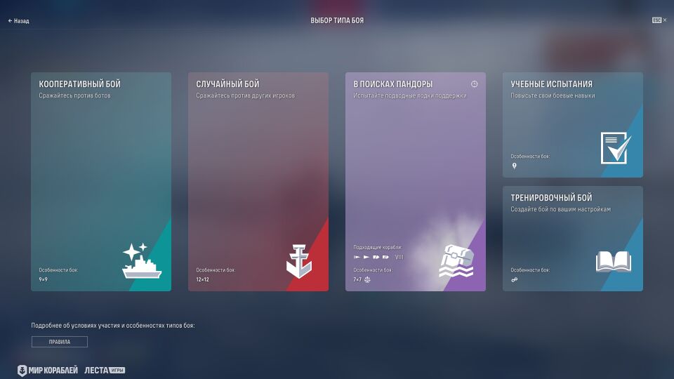 Если тип боя недоступен (например, новичкам, ещё не достигшим определённого уровня доступа), то эта информация также будет отображаться на данном экране. Помимо этого, добавлена вкладка с более подробными правилами всех основных типов боя (левый нижний угол).