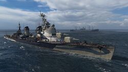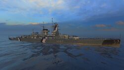 | 6 | Leander | Штатный | Да | 1000 | — | Камуфляж соответствует исторической окраске однотипного корабля HMS Ajax (1934) на 1943 год | |