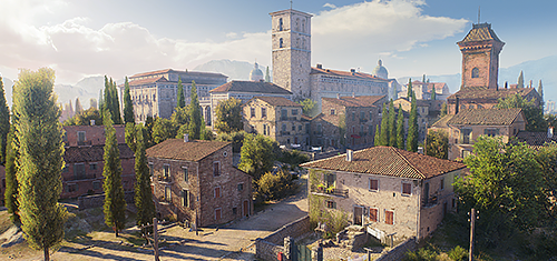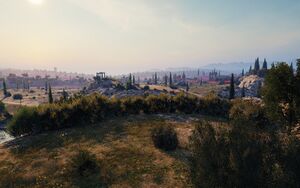 В центре карты находятся большой монастырь и город. Три дороги позволяют проехать с севера на юг. Двор монастыря является выгодной огневой позицией. Длинный холм на западе и извилистый овраг на востоке отлично защищают от артиллерийского огня. Антураж карты напоминает сражение за монастырь Монте-Кассино в Италии (1944).